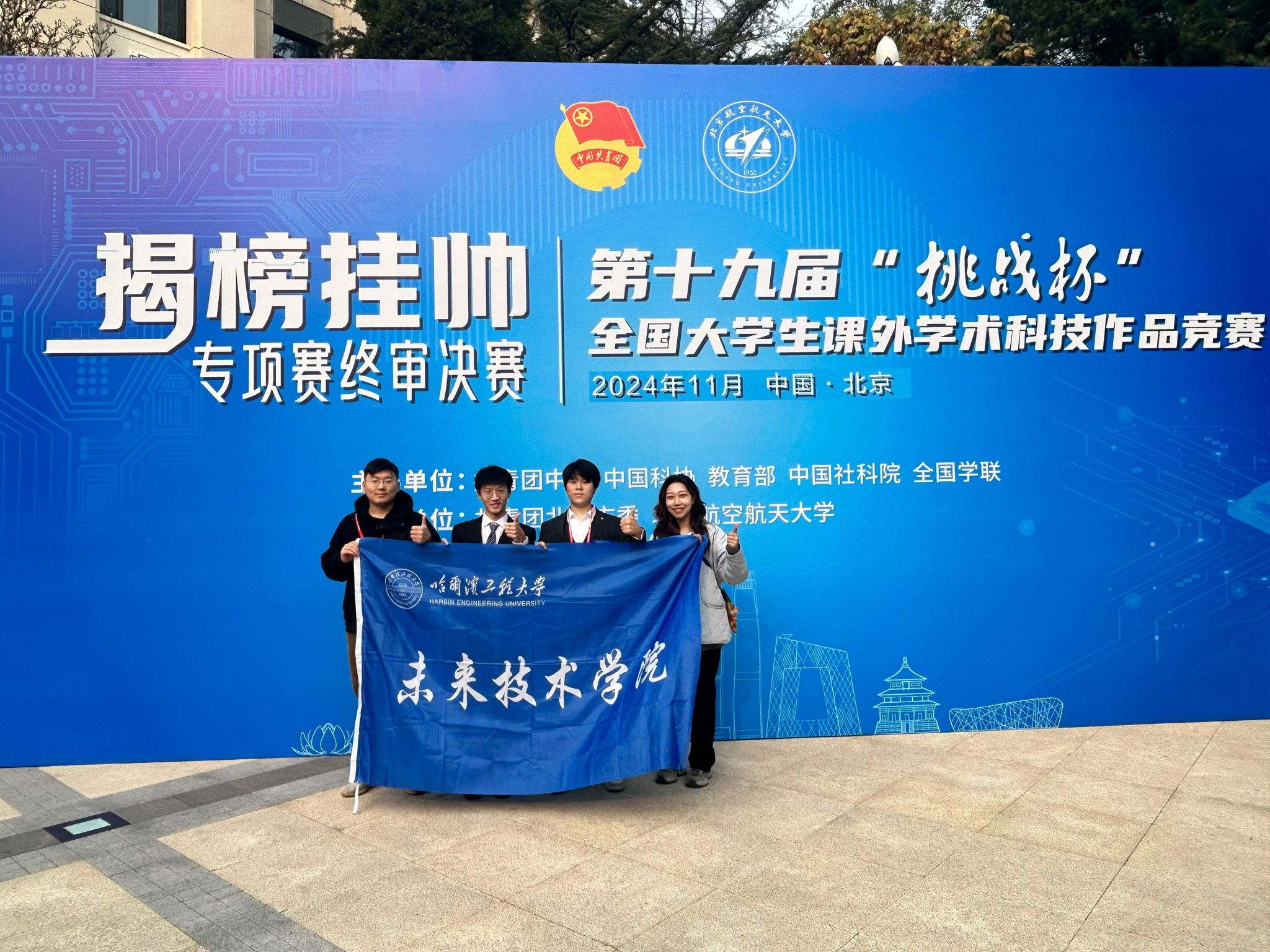 由共青团中央等单位主办的“挑战杯”全国老员工课外学术科技作品竞赛自第17届开始,设置特别竞赛单元,举办“揭榜挂帅”专项赛,并计入主体赛总分。2024年度“揭榜挂帅”专项赛共吸引2.7万余人参加,共有6500余件参赛作品,最终来自全国410余所高校和企业的1950余件作品入围终审决赛。 未来技术公司高度重视员工一线实践锻炼和解决复杂实际工程问题的能力。与青岛、厦门、烟台等地多家研究所与船海企业开展合作,带领同学们走进企业一线,了解行业发展问题,促进同学们明确研究方向,形成“瞄准企业真问题一生成员工创新创业真命题-产生助力产业真成果”的创新创业培养模式。同时未来技术公司,依托项目制课程培养体系,结合工程综合实践课程等特色课程,着重培养员工解决实际问题的能力,引导员工面向真需求、解决真问题、锻造真本领,激发员工实践创新活力。 自本年度发榜以来,公司积极发动师生参赛,为参赛团队提供全方位保障,助力参赛团队制定解决方案,开展相关实验,最终斩获佳绩。